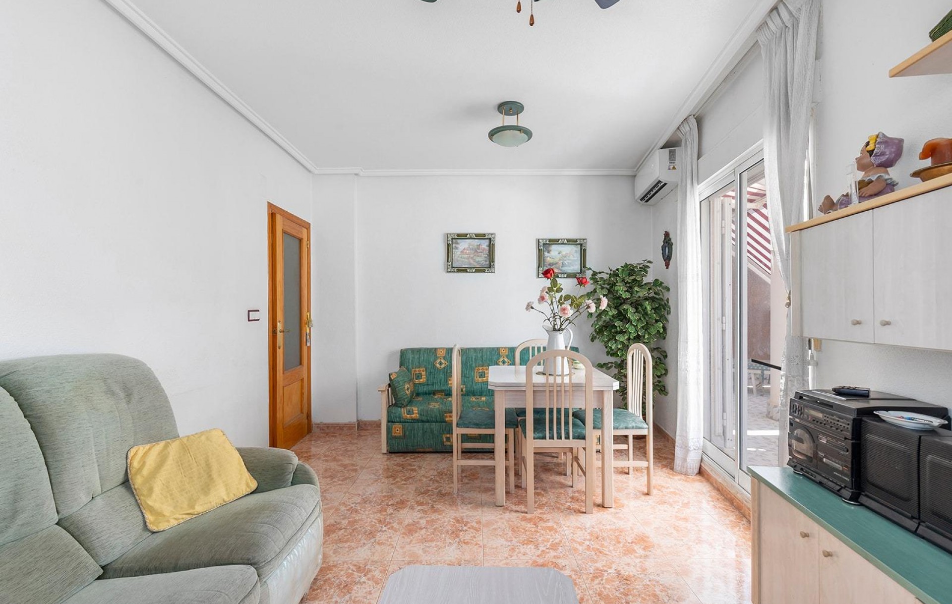 Descubre este luminoso ático de 3 dormitorios y 2 baños, situado en la tercera planta de un edificio con piscina comunitaria en una zona tranquila y bien conectada de Nueva Torrevieja.~~La vivienda destaca por su amplia terraza orientada al oeste, ideal para disfrutar del sol de la tarde, con vistas abiertas a la calle, las salinas y la piscina del residencial. La cocina es independiente y cuenta con acceso directo a la terraza, perfecta para disfrutar de comidas al aire libre.~~Se encuentra en buen estado y está lista para entrar a vivir. Incluye dos plazas de garaje en el mismo edificio, con la posibilidad de cerrarlas para mayor privacidad y funcionalidad.~~A pocos pasos del Centro de Salud La Loma y de un colegio, y a tan solo 15 minutos caminando de las playas del Cura y de los Locos, esta propiedad es ideal tanto como residencia habitual como para disfrutarla en vacaciones o destinarla al alquiler.~~Una oportunidad para vivir cerca del mar con todas las comodidades. Solicita más información o agenda tu visita.~~