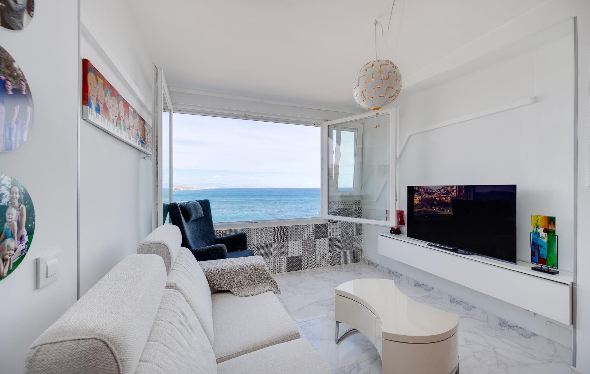 Exclusivo apartamento reformado en primera línea de playa con vistas frontales al mar~Presentamos esta magnífica vivienda ubicada en una posición inmejorable, frente al mar y a escasos metros de la arena, que combina el lujo, la comodidad y el placer de vivir junto al Mediterráneo.~El apartamento ha sido totalmente reformado con materiales de primera calidad, cuidando cada detalle para ofrecer un espacio moderno, funcional y acogedor. Su diseño interior destaca por la luminosidad natural que inunda todas las estancias gracias a los amplios ventanales con vistas directas al mar, creando una atmósfera única de tranquilidad y bienestar.~Dispone de dos amplios dormitorios, ambos con acabados elegantes, ideales para garantizar el descanso y la privacidad. El baño completo, de estilo moderno cuenta con sanitarios de diseño, una ducha con mampara de cristal y detalles en tonos neutros que aportan un aire sofisticado.~La cocina, completamente amueblada y equipada con electrodomésticos de alta gama, ha sido diseñada para aprovechar al máximo el espacio y la funcionalidad, integrándose perfectamente con la zona de comedor y el salón principal. Desde el salón puede disfrutar de las vistas frontales e ininterrumpidas al mar, el lugar perfecto para disfrutar de los amaneceres, relajarse o compartir momentos inolvidables frente al sonido de las olas.~~Situado en una zona privilegiada, el apartamento se encuentra cerca de todos los servicios esenciales: supermercados, restaurantes, centros comerciales, zonas deportivas y transporte público. Todo ello, sin renunciar a la tranquilidad de vivir en un entorno costero exclusivo.~Este inmueble es ideal tanto para residir durante todo el año, disfrutando del clima suave y del estilo de vida mediterráneo, como para invertir en una propiedad de alta demanda en una de las zonas más valoradas del litoral.~Una oportunidad única de vivir el mar desde tu propia casa.~
