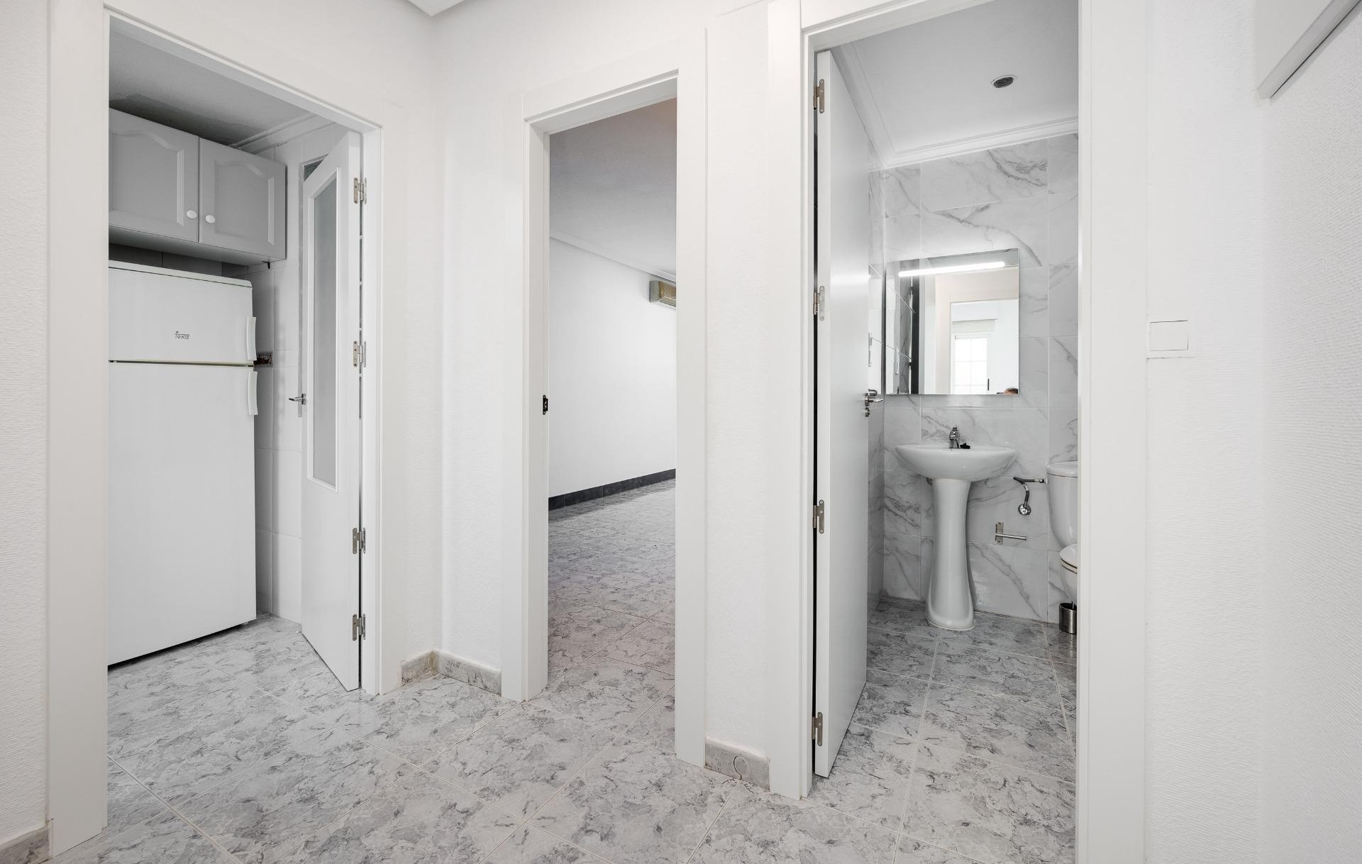 Denna rymliga lägenhet med 2 sovrum har ett komplett badrum och en toalett i sovrummet, perfekt för avskildhet och komfort. Det separata köket inkluderar ett skafferi, perfekt för att hålla allt organiserat, och är fullt utrustat och klart att använda.~~Lägenheten har en inglasad terrass, vilket gör att du kan njuta av utrymmet året runt, oavsett väder. Den säljs omöblerad, vilket ger köparen friheten att möblera och inreda den efter eget tycke.~~Komplexet har en gemensam pool, perfekt för avkoppling och att njuta av det behagliga vädret. Läget är oslagbart: ett hälsocenter, skola och apotek ligger alla mittemot, vilket ger stor bekvämlighet för familjer. Området erbjuder också parker, stormarknader, restauranger och en busshållplats. Cura-stranden ligger bara 5 minuters bilresa bort.~